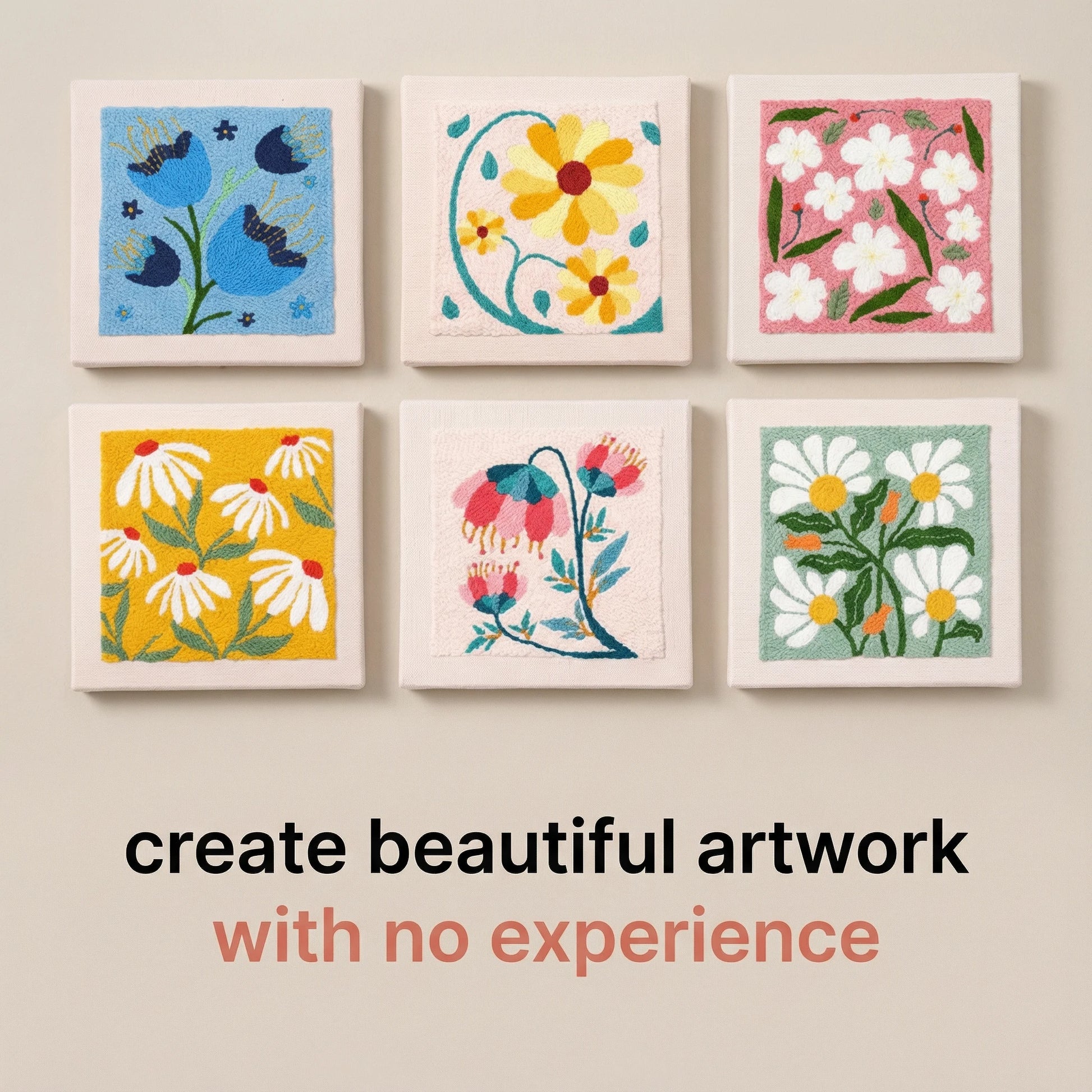 Never touched a punch needle? Perfect. This kit is designed for complete beginners. Every step is laid out clearly—thread the needle, punch through the fabric, watch the loops form. That's it. No guessing, no frustration, just follow along and you'll have something you're proud of within the hour. If you can follow a recipe, you can do this.